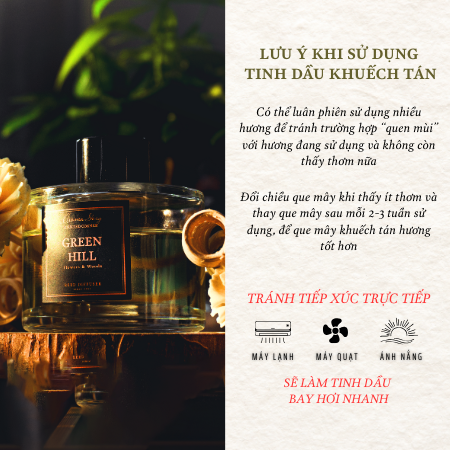 Lưu ý: thời gian sử dụng còn tùy thuộc vào số que được sử dụng, độ thoáng khí của khu vực sử dụng tinh dầu.